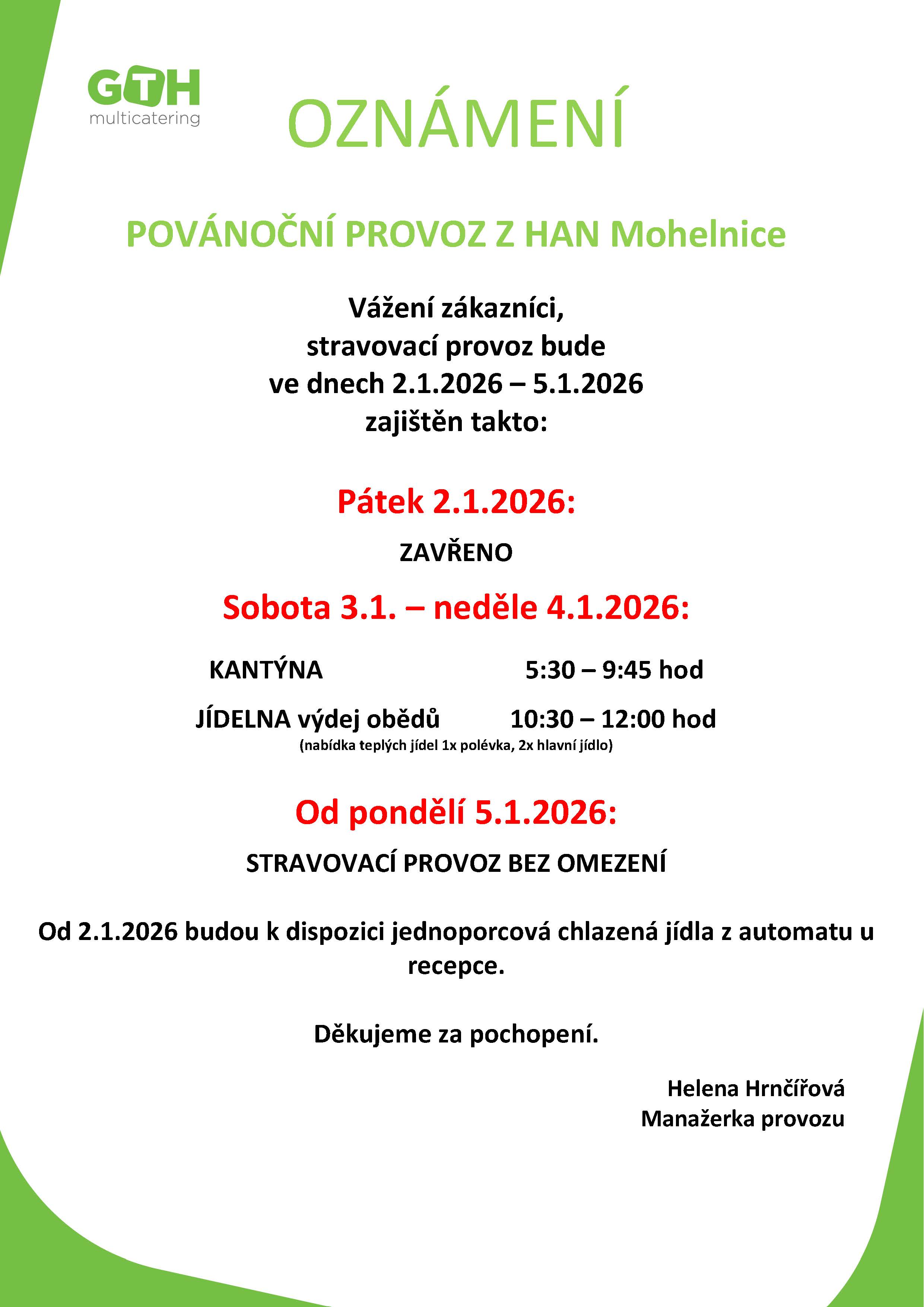 V případě jakýchkoliv dotazů se neváhejte obrátit na náš personál.